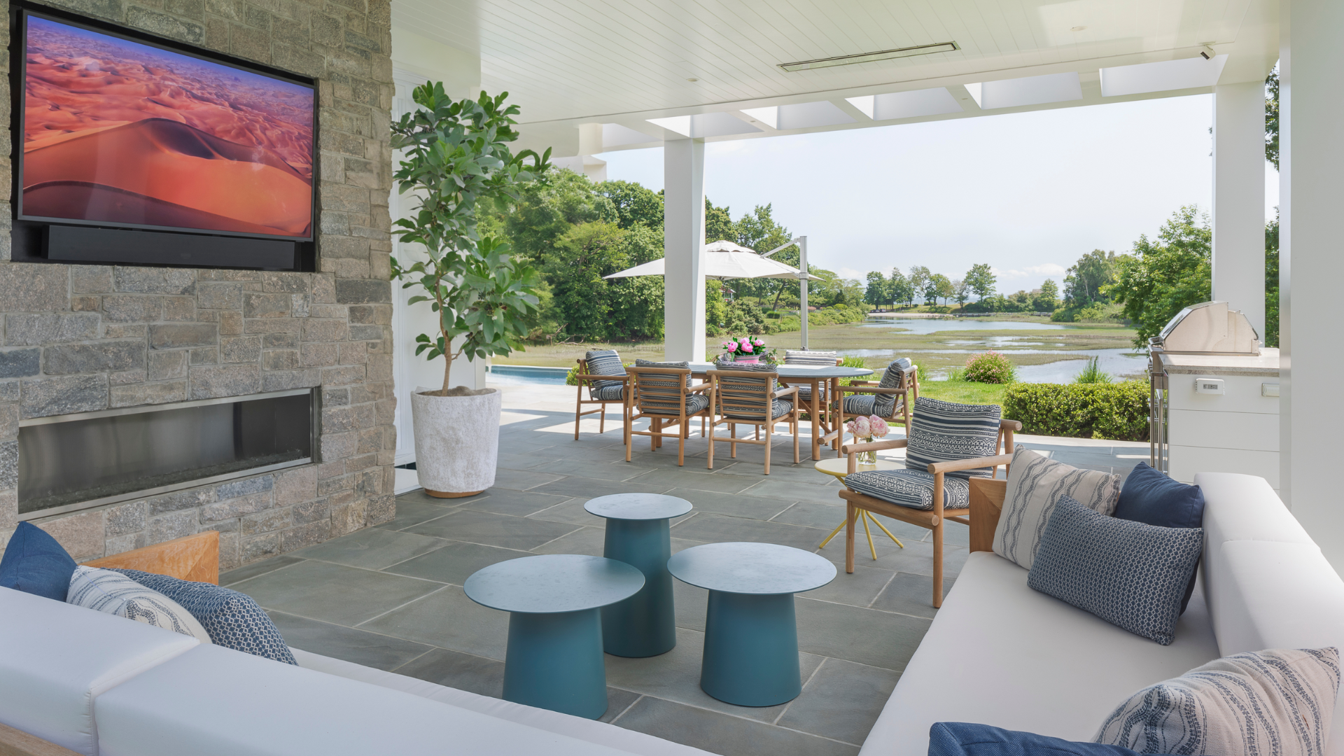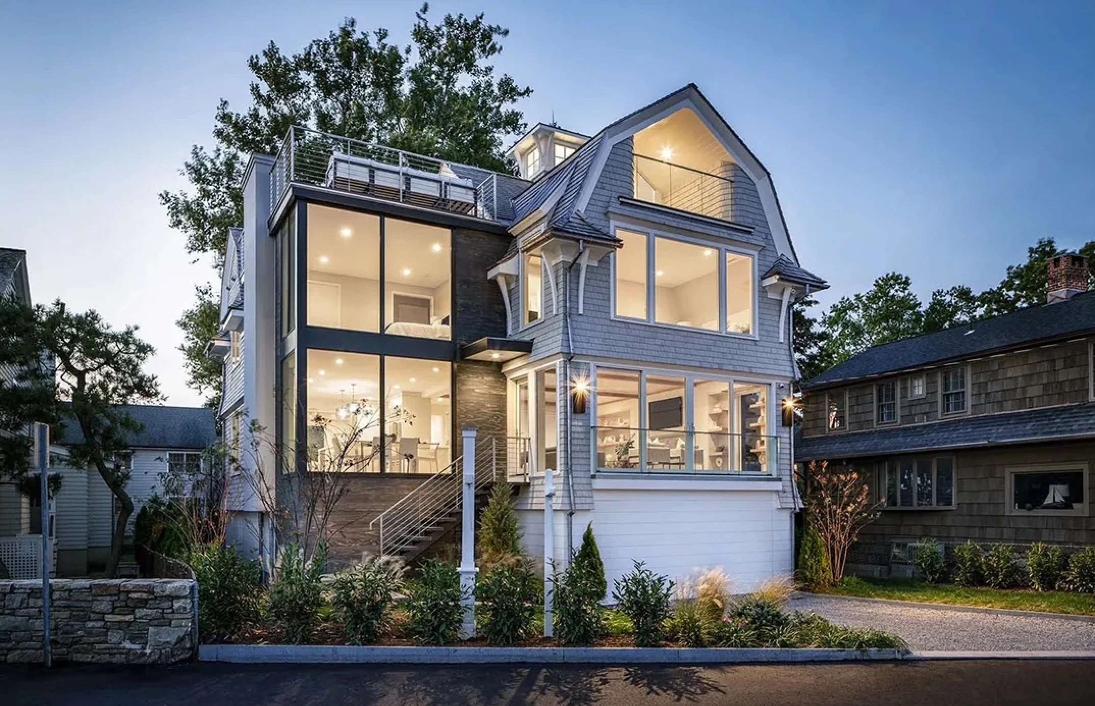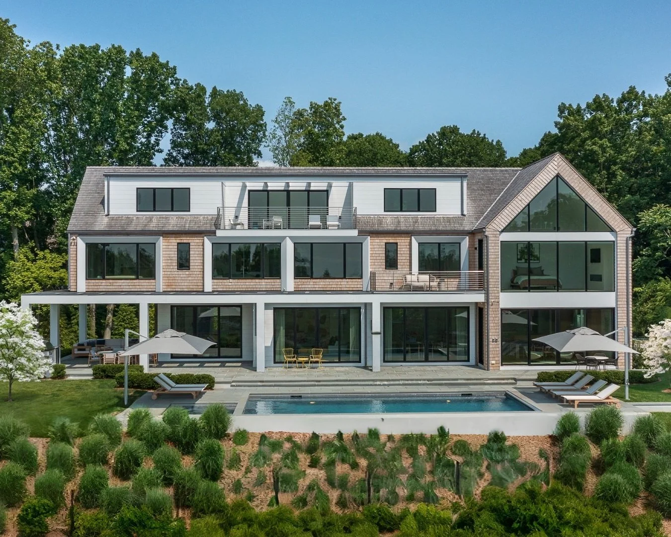 “It’s and absolutely spectacular setting.” Says Laura Gorman of Laura Gorman Interiors, the designer who worked with ..Bluewater Home, on this modern shingle style family home on a culdesac in Fairfield County, Connecticut..These deluxe custom homes are usually snapped up very quickly.Description goes here